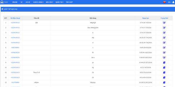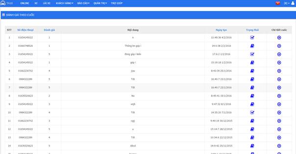 - Bảng này hiển thị chi tiết tình trạng của từng cuốc theo điều kiện tìm kiếm, hệ thống đang để mặc định hiển thị ra 2 ngày gần nhất. Thao tác với bảng này như sau: